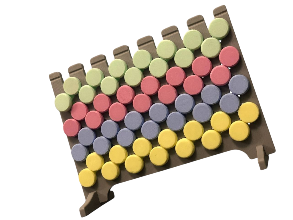 Игра изготовлена методом 3Д-печати из материала PLA. PLA (Полилактид) — биоразлагаемый пластик, в основе которого находится молочная кислота
